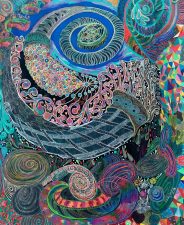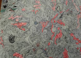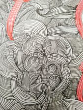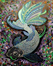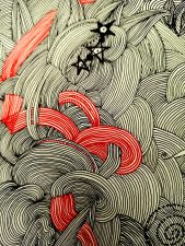 “Koi fire” and detail. 65x50cm. drawing